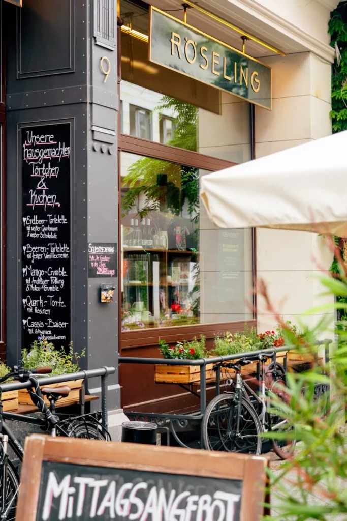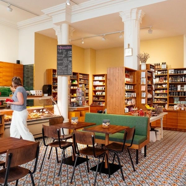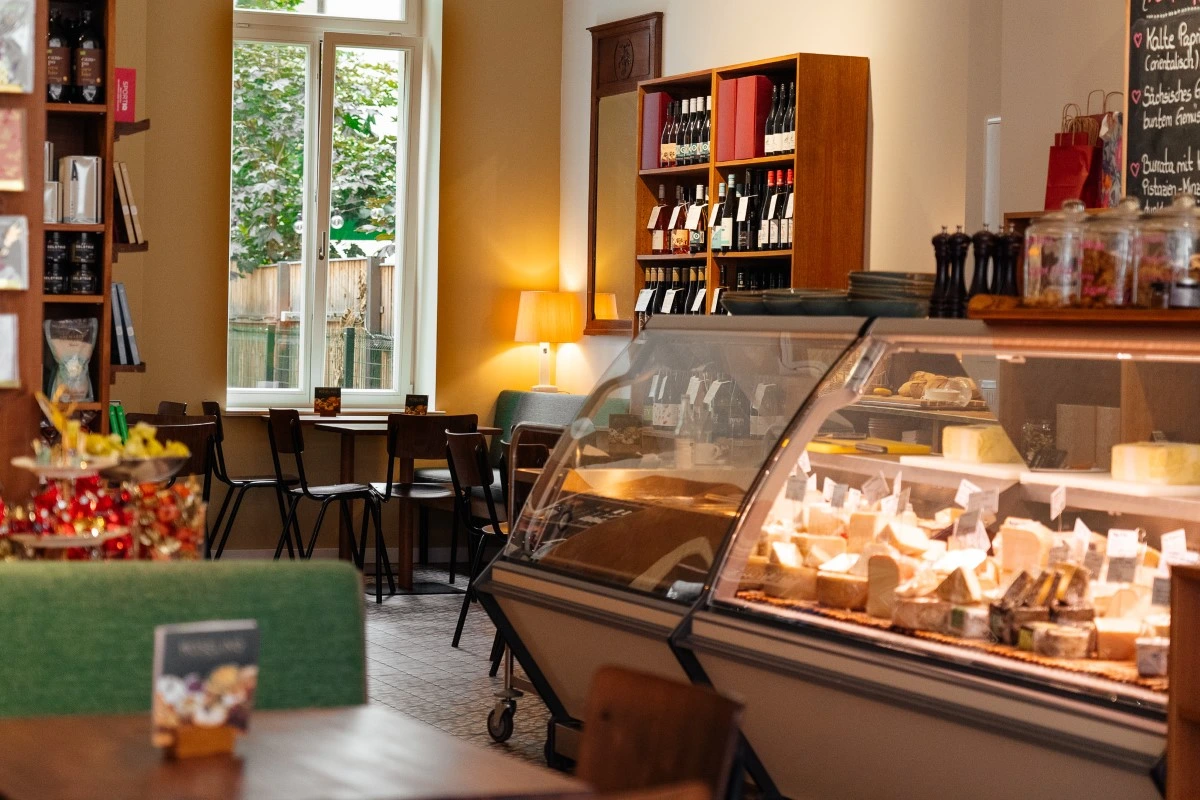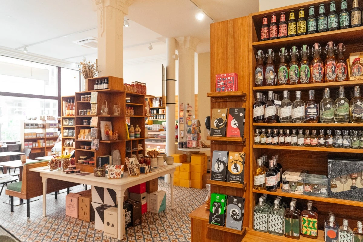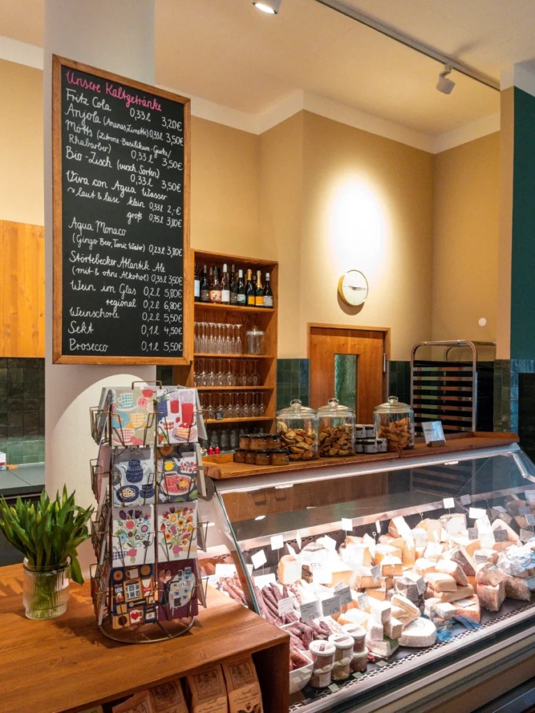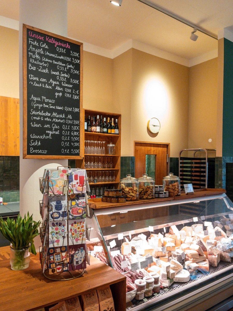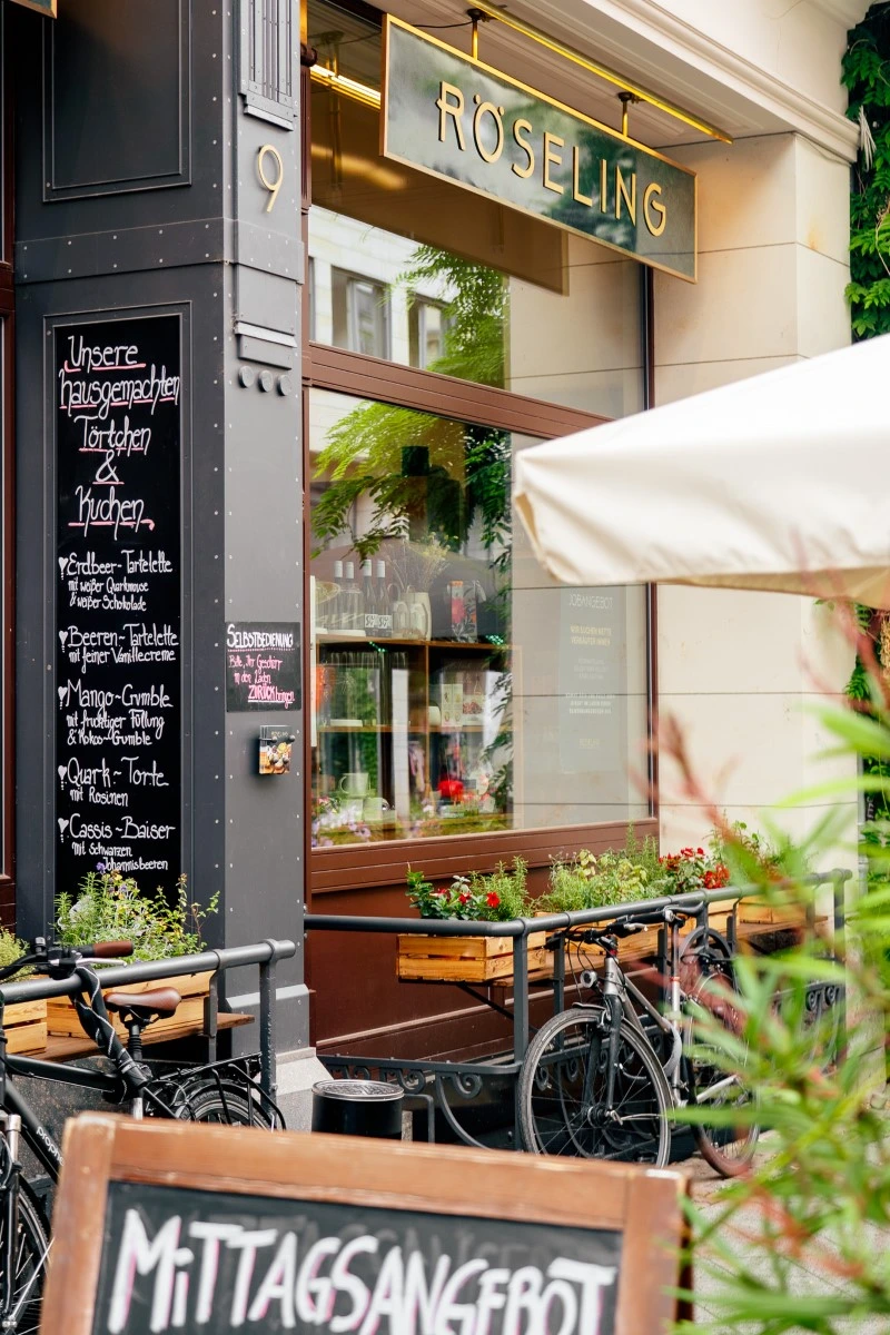 Drei Geschäfte gibt es bislang vom RÖSELING, und eins ist schöner als das andere. Wir verkaufen dort feine Aufstriche und Salate, die in unserer Produktionsküche ersonnen und zubereitet werden. Außerdem Kuchen, Torten und Tartelettes aus unserer Konditorei. In den Regalen finden sich Weine, Bücher, Chutneys, Schokoladen … die Liste der Dinge ist zu lang.
